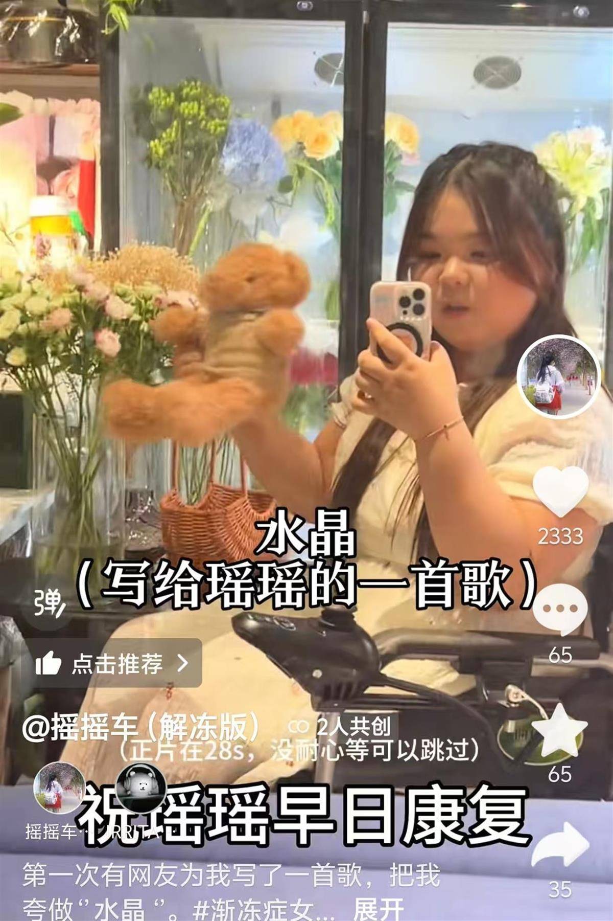 近日,湖北武汉两名高中生为抖音网红渐冻症女孩“摇摇车(解冻版)”创作的歌曲《水晶》引发网友点赞。8月23日上午,极目新闻记者联系歌曲创作者之一小艾,她表示希望通过歌曲让更多人记住博主“摇摇车(解冻版)”。