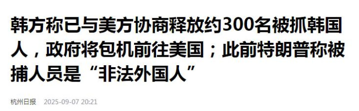 如今,韩国方面在7号通报称,已经和美方协商完毕,他们将会包机前往美国,把被抓的300多人接回来,事情似乎得到了完美的解决。